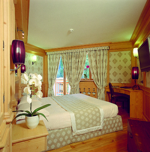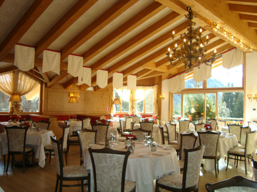 The hotel features the Cristal Energy Spa, a large fitness and wellness centre with indoor swimming pool. The restaurant has a panoramic terrace overlooking the mountains. Please note that whilst the hotel is lovely, the 4* Superior rating is Italian and not comparable to 4* Superior hotels in Switzerland or Austria, which is reflected in the package price.
